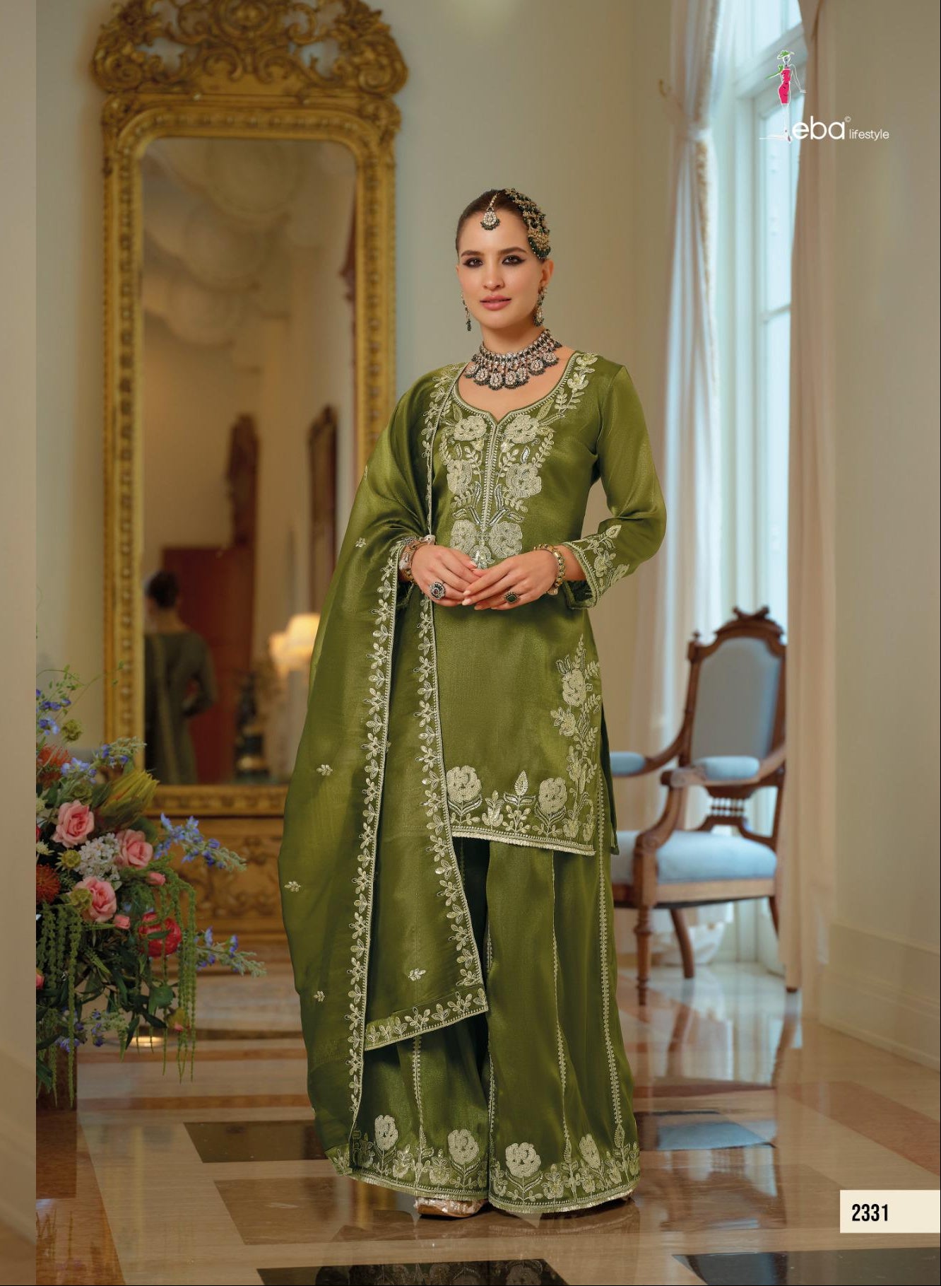 Eba N Olive Green Embroidered Designer Kurti Palazzo Set