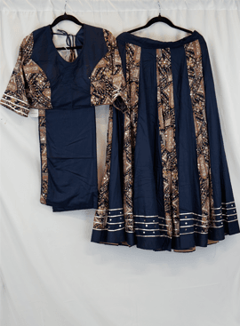 Navy Blue Mirror Work Lehenga Set with Printed Panels and Designer Blouse